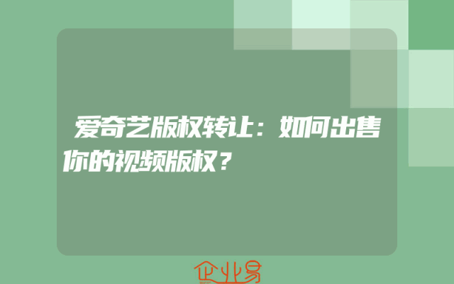 - 爱奇艺版权转让:如何出售你的视频版权?