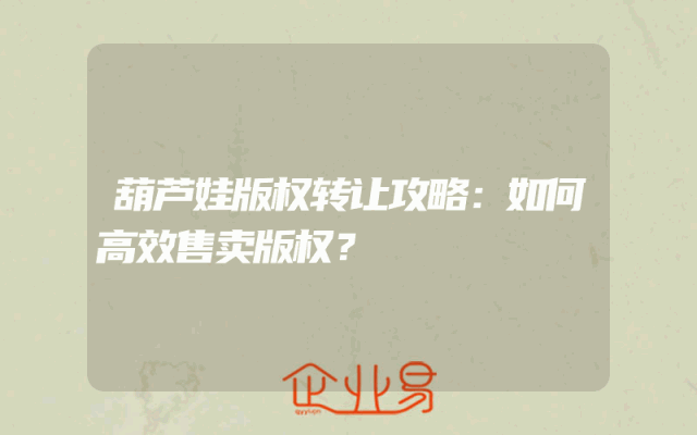 - 葫芦娃版权转让攻略:如何高效售卖版权?