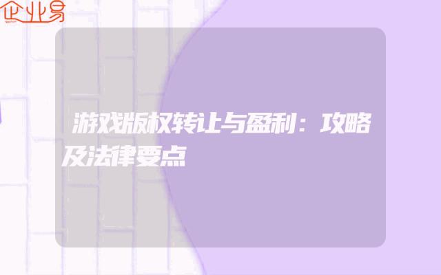 - 游戏版权转让与盈利:攻略及法律要点