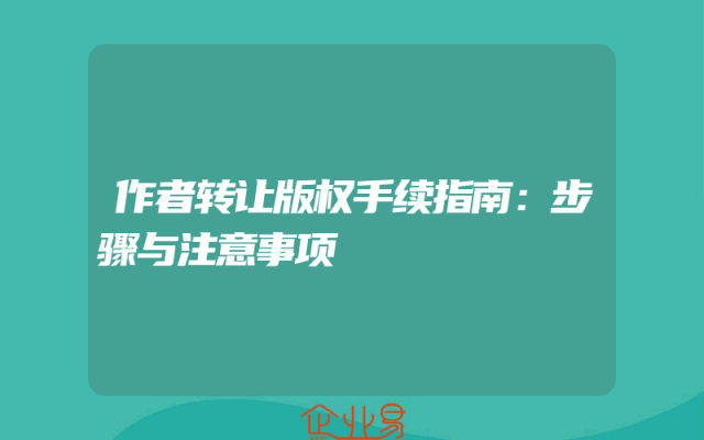 - 作者转让版权手续指南:步骤与注意事项一、了解版权转让基本概念在开始版权转让手续之前,作者需要明确版权转让的基本概念。版权转让是指作者将其作品的所有权、使用权、收益权等权利,通过法定程序和对方达成协议后,转移给另一方或组织的行为。在这个过程中