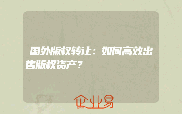 - 国外版权转让:如何高效出售版权资产?一、明确版权资产的价值在出售版权资产之前,首先需要明确其真实价值。这涉及到对作品创新性、市场需求、潜在收益、同类作品市场行情等多个维度的评估。版权所有者应当进行详尽的市场调研,并咨询专业的知识产权顾问,确
