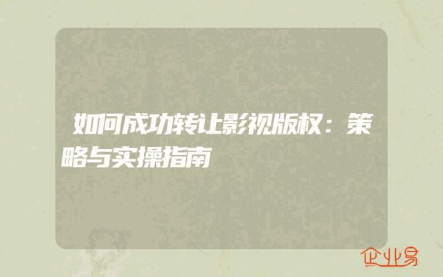 - 如何成功转让影视版权:策略与实操指南