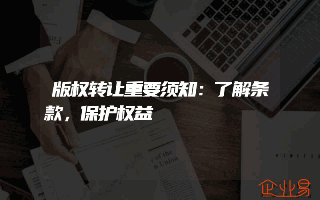 - 版权转让重要须知:了解条款,保护权益一、引言随着知识产权保护意识的不断提高,版权转让成为许多创作者与使用者之间的一个重要环节。无论是文学作品、艺术作品还是软件程序等作品,在进行版权转让时,了解相关的条款和规定对于保护自己的权益至关重要。本文