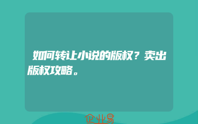 - 如何转让小说的版权?卖出版权攻略。