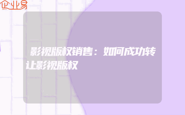 - 影视版权销售:如何成功转让影视版权