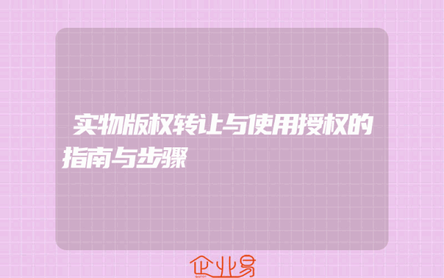 - 实物版权转让与使用授权的指南与步骤一、了解实物版权转让的基本概念在现代社会,知识产权的保护日益受到重视,实物版权作为其中的一部分,指的是对特定物品的设计、制造、销售等环节的专有权利。当你想转让自己的实物版权时,首先要明确转让的具体内容和范围