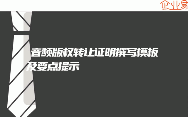 - 音频版权转让证明撰写模板及要点提示一、引言随着数字化时代的到来,音频版权问题日益受到重视。版权转让作为知识产权流转的重要环节,对于保护创作者权益、促进文化产业发展具有重要意义。撰写音频版权转让证明时,需要明确各方权益,确保交易合法合