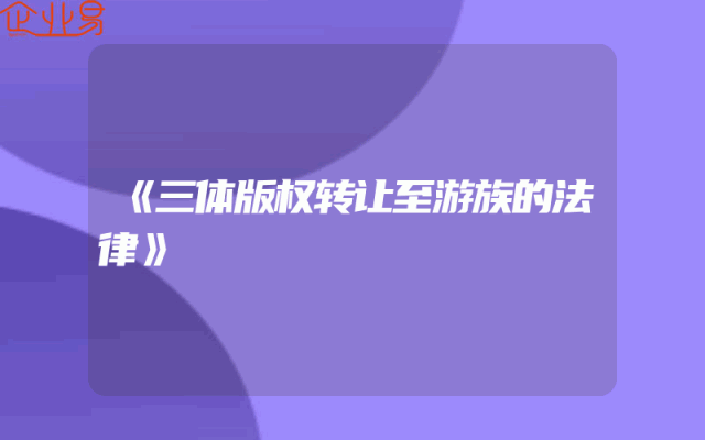 - 三体版权转让至游族的法律解析一、版权转让背景及概述近年来,文化产业迅速发展,IP版权成为各大企业争夺的焦点。刘慈欣的科幻巨著《三体》在国内外获得极高声誉,其版权问题自然也引起了广泛关注。最近,《三体》版权转让至游族的新闻成为热议话题。对此,