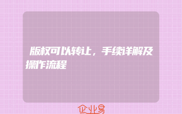 - 版权可以转让,手续详解及操作流程