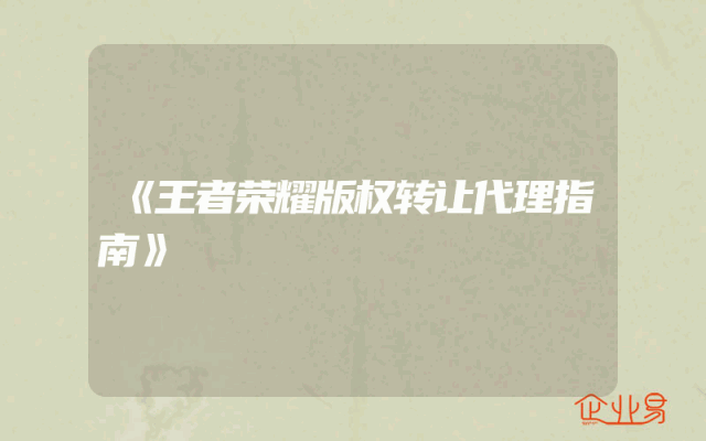 - 《王者荣耀版权转让代理指南》
