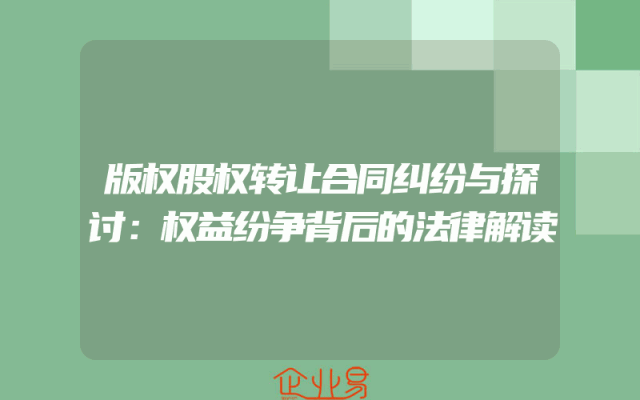 - 版权股权转让合同纠纷与探讨:权益纷争背后的法律解读
