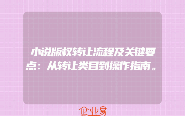 - 小说版权转让流程及关键要点:从转让类目到操作指南。