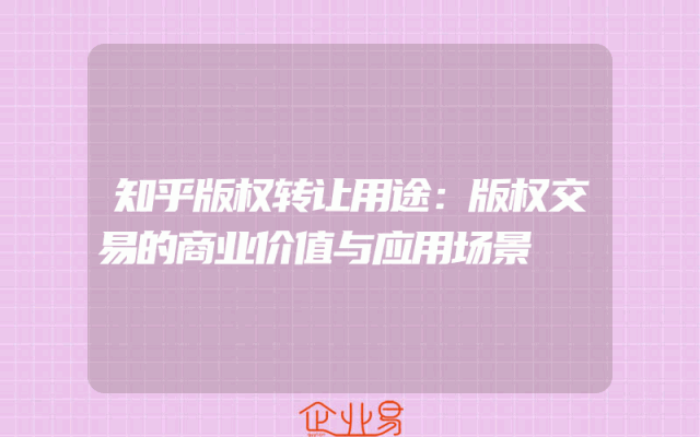 - 知乎版权转让用途:版权交易的商业价值与应用场景