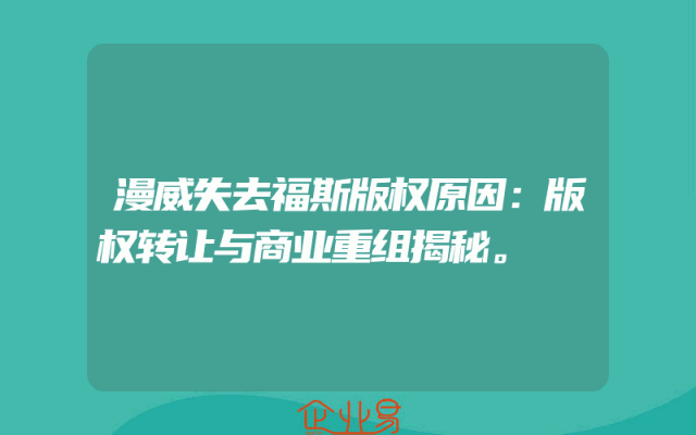 - 漫威失去福斯版权原因:版权转让与商业重组揭秘。