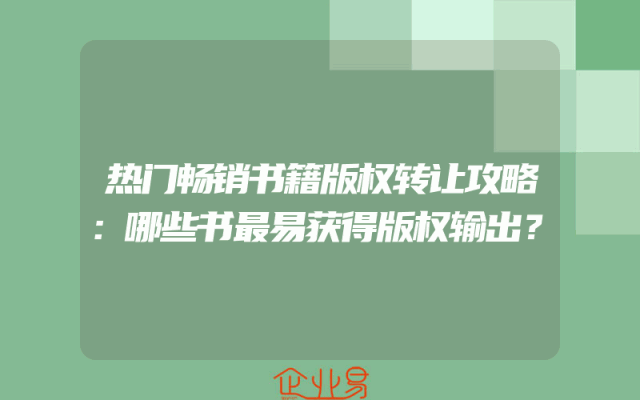 - 热门畅销书籍版权转让攻略:哪些书最易获得版权输出?