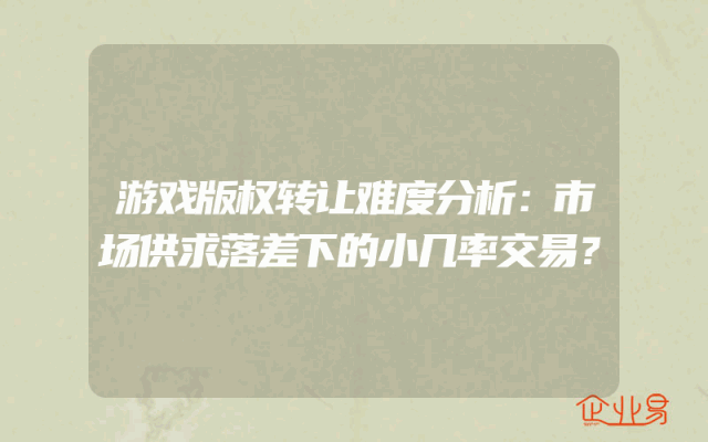 - 游戏版权转让难度分析:市场供求落差下的小几率交易?