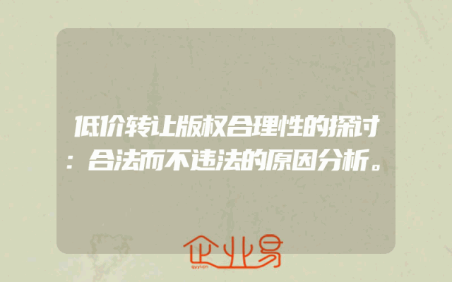 - 低价转让版权合理性的探讨:合法而不违法的原因分析。