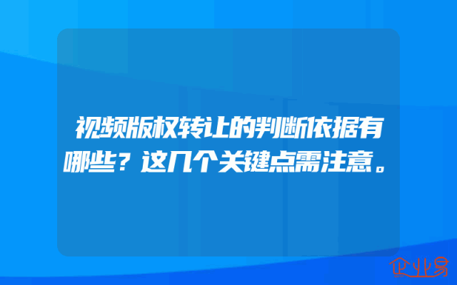 - 视频版权转让的判断依据有哪些?这几个关键点需注意。