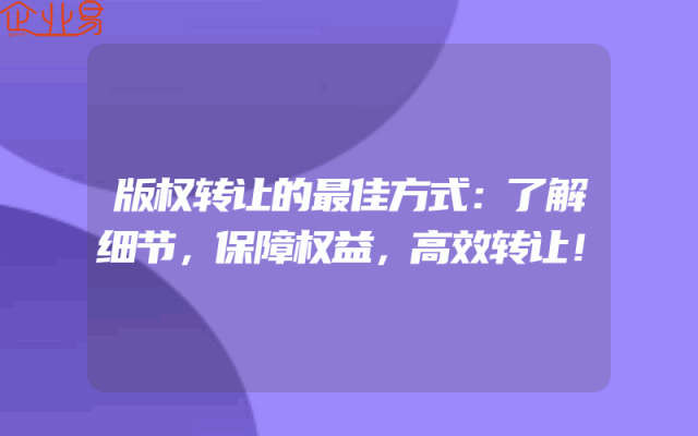 - 版权转让的最佳方式:了解细节,保障权益,高效转让!
