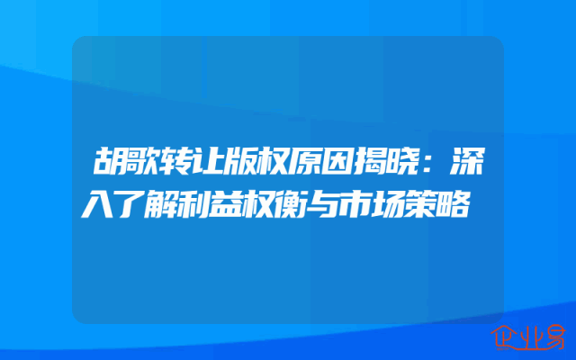 - 胡歌转让版权原因揭晓:深入了解利益权衡与市场策略