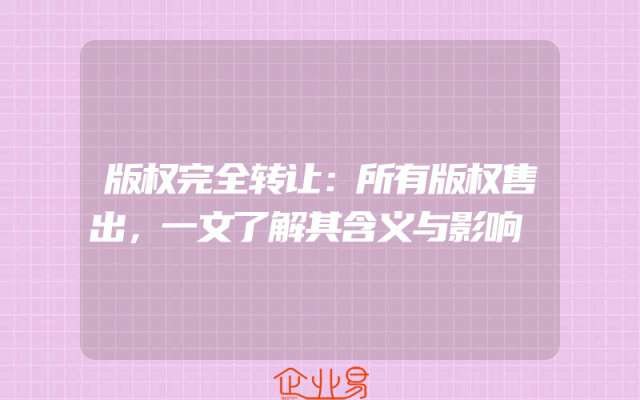 - 版权完全转让:所有版权售出,一文了解其含义与影响