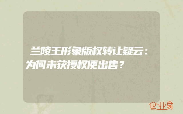 - 兰陵王形象版权转让疑云:为何未获授权便出售?