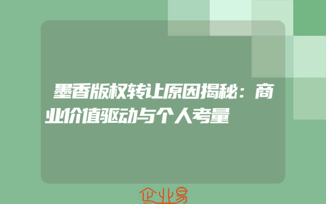 - 墨香版权转让原因揭秘:商业价值驱动与个人考量