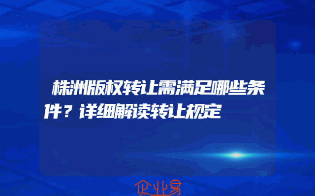 - 株洲版权转让需满足哪些条件?详细解读转让规定