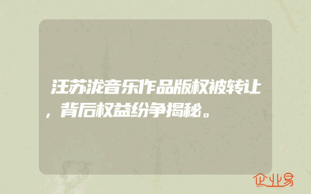 - 汪苏泷音乐作品版权被转让,背后权益纷争揭秘。