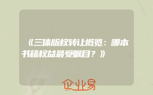 - 《三体版权转让概览:哪本书籍权益最受瞩目?》
