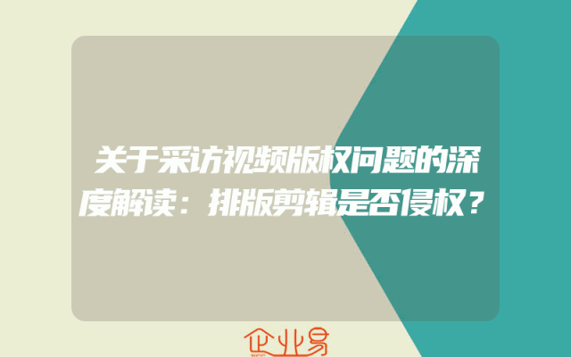 - 关于采访视频版权问题的深度解读:排版剪辑是否侵权?