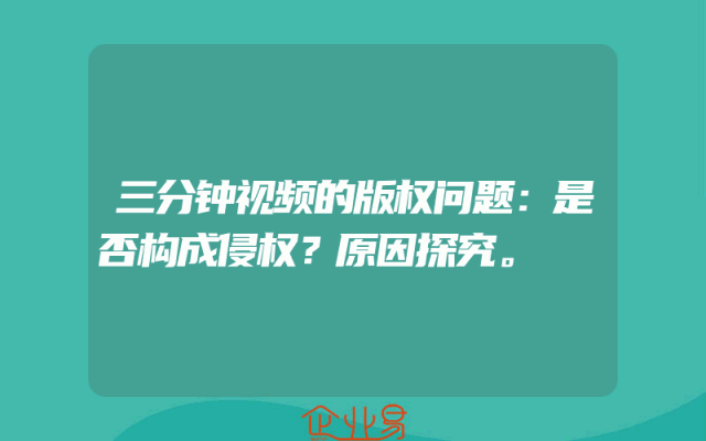 - 三分钟视频的版权问题:是否构成侵权?原因探究。
