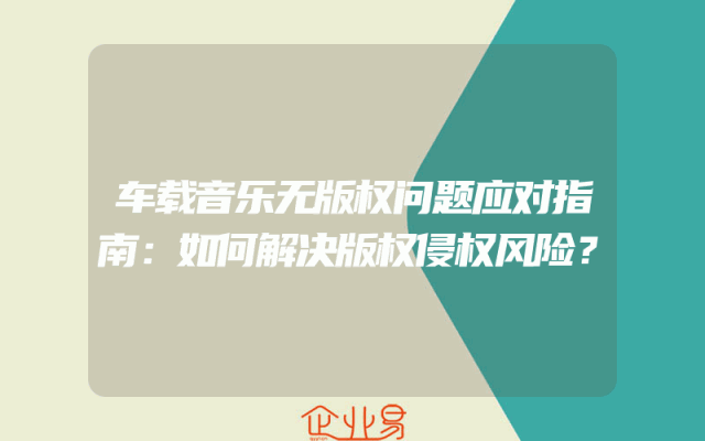 - 车载音乐无版权问题应对指南:如何解决版权侵权风险?
