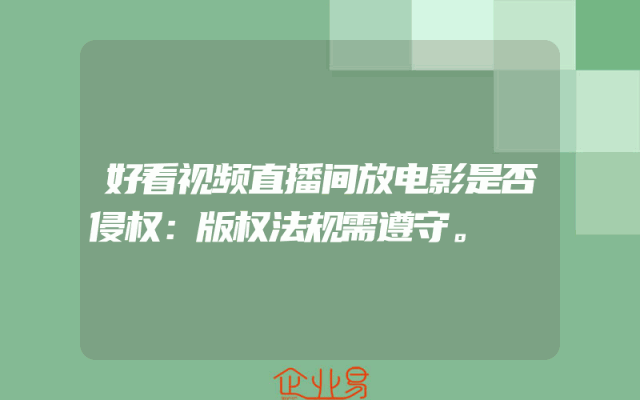 - 好看视频直播间放电影是否侵权:版权法规需遵守。