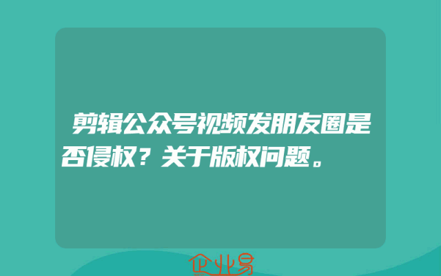 - 剪辑公众号视频发朋友圈是否侵权?关于版权问题。