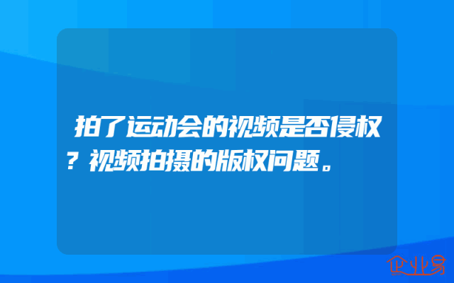 - 拍了运动会的视频是否侵权?视频拍摄的版权问题。