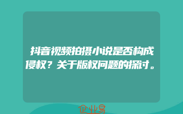 - 抖音视频拍摄小说是否构成侵权?关于版权问题的探讨。