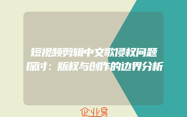 - 短视频剪辑中文歌侵权问题探讨:版权与创作的边界分析一、背景概述随着互联网的普及和短视频平台的飞速发展,短视频创作中的音乐版权问题日益凸显。许多创作者在剪辑短视频时,难以把握使用他人歌曲是否构成侵权,这也使得中文歌版权在短视频领域面临