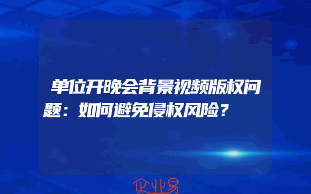 - 单位开晚会背景视频版权问题:如何避免侵权风险?