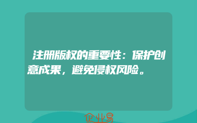 - 注册版权的重要性:保护创意成果,避免侵权风险。