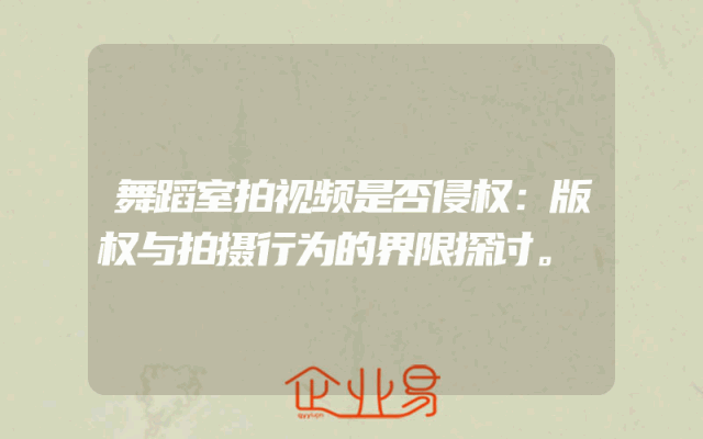 - 舞蹈室拍视频是否侵权:版权与拍摄行为的界限探讨。
