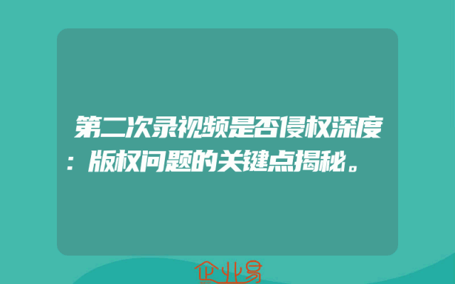 - 第二次录视频是否侵权深度:版权问题的关键点揭秘。
