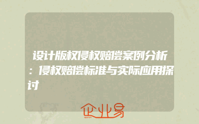 - 设计版权侵权赔偿案例分析:侵权赔偿标准与实际应用探讨