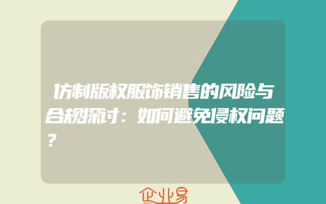 - 仿制版权服饰销售的风险与合规探讨:如何避免侵权问题?