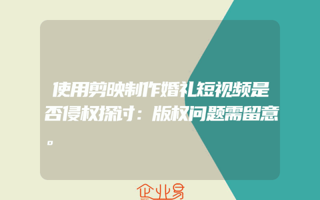 - 使用剪映制作婚礼短视频是否侵权探讨:版权问题需留意。