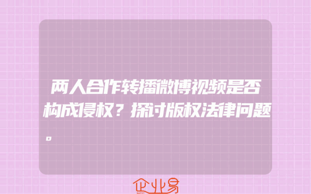 - 两人合作转播微博视频是否构成侵权?探讨版权法律问题。