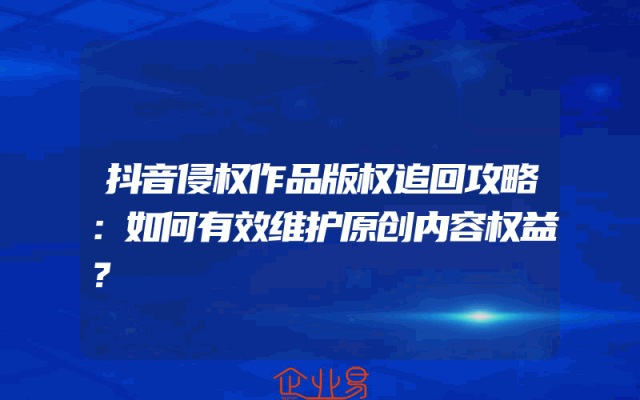 - 抖音侵权作品版权追回攻略:如何有效维护原创内容权益?