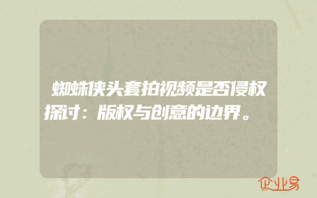 - 蜘蛛侠头套拍视频是否侵权探讨:版权与创意的边界。