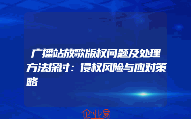 - 广播站放歌版权问题及处理方法探讨:侵权风险与应对策略一、版权问题的现状分析随着广播行业的迅速发展,广播站在播放音乐时的版权问题日益突出。未经授权播放音乐,很可能引发版权侵权风险。音乐版权不仅涉及作