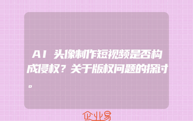 - AI头像制作短视频是否构成侵权?关于版权问题的探讨。